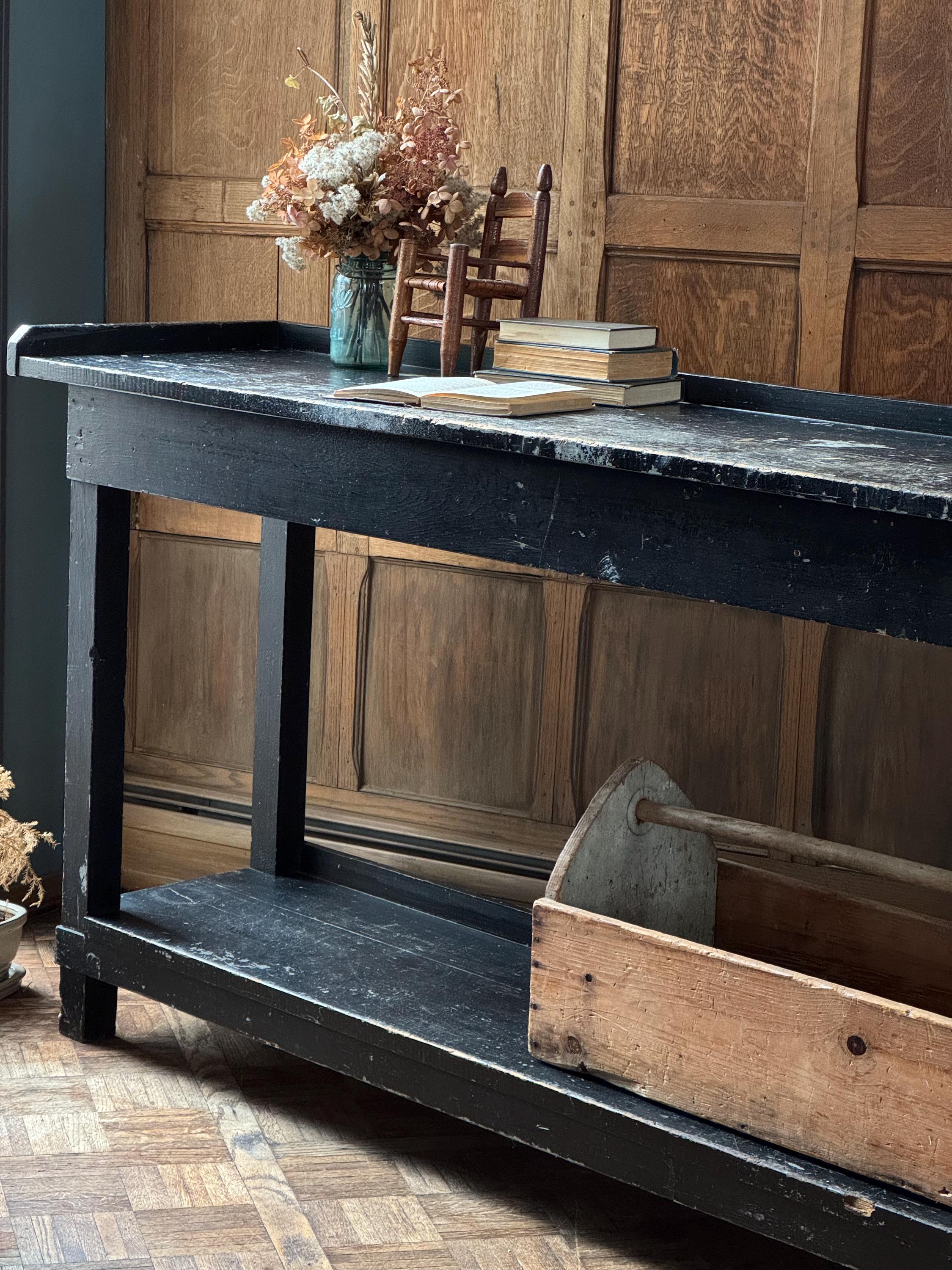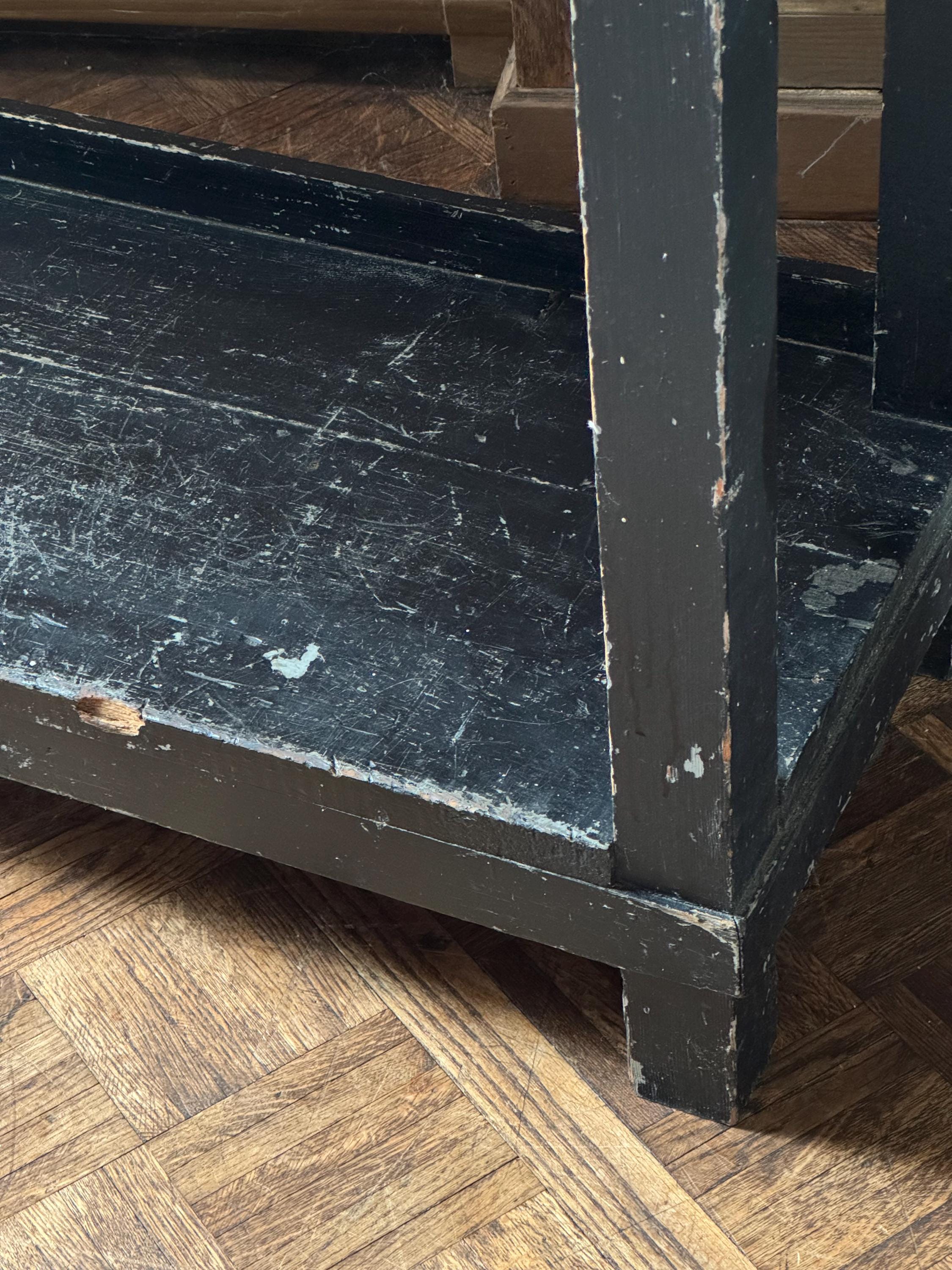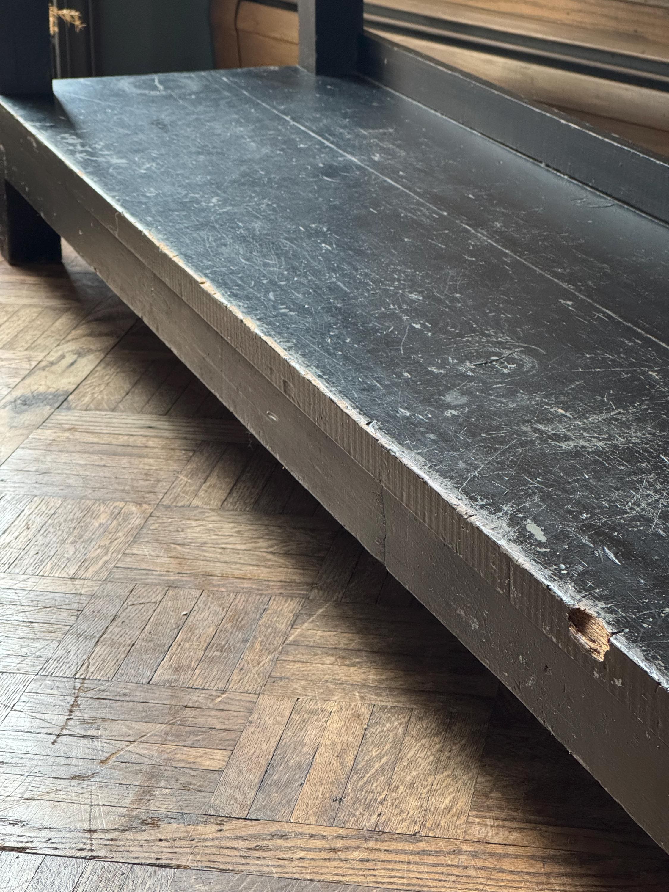 Scuffs, scratches, dings, dents, nicks, chips, splits in wood, old nail holes, saw marks, staining, wear to finish, layers of old paint, paint splatter, etc.