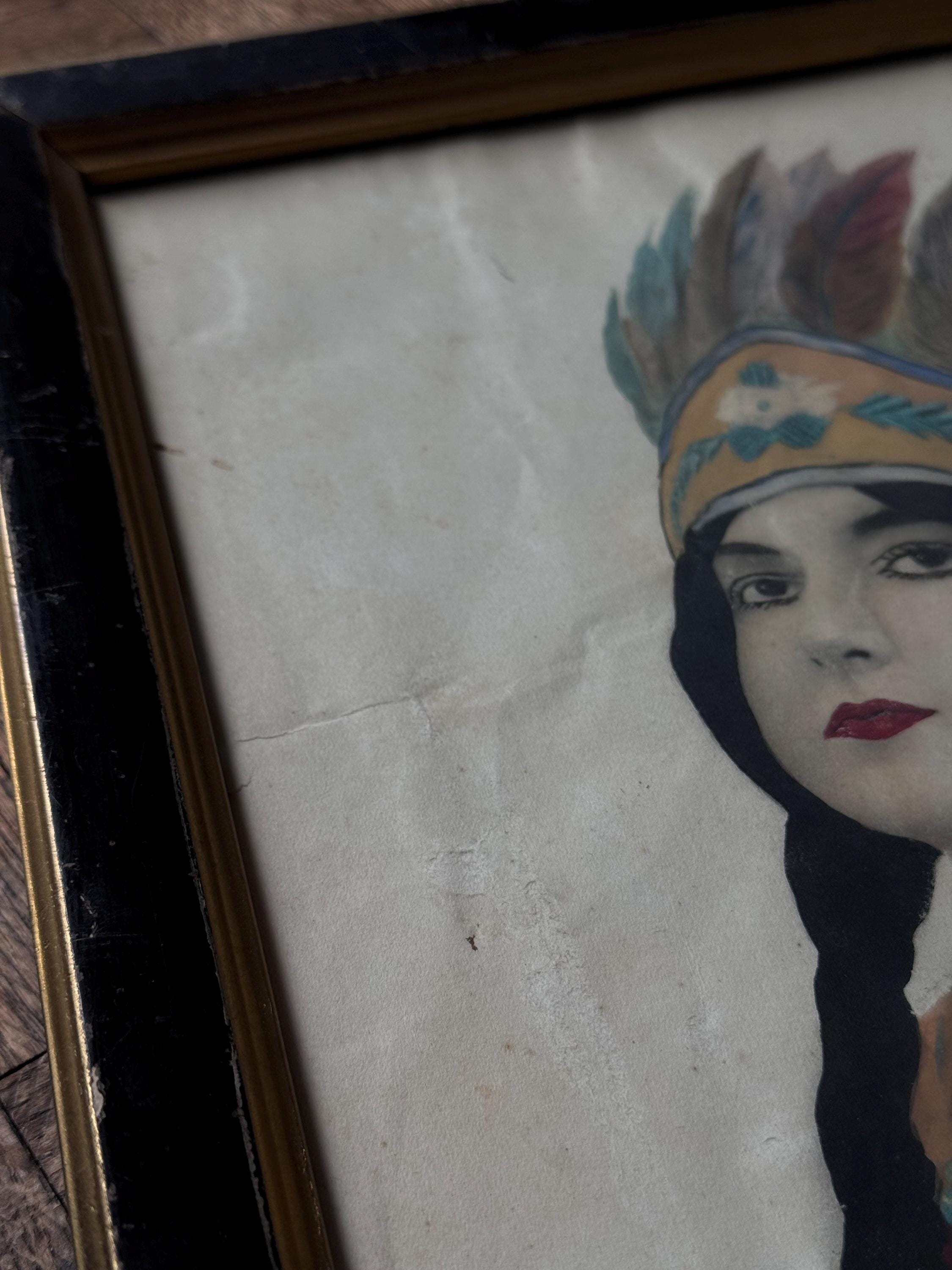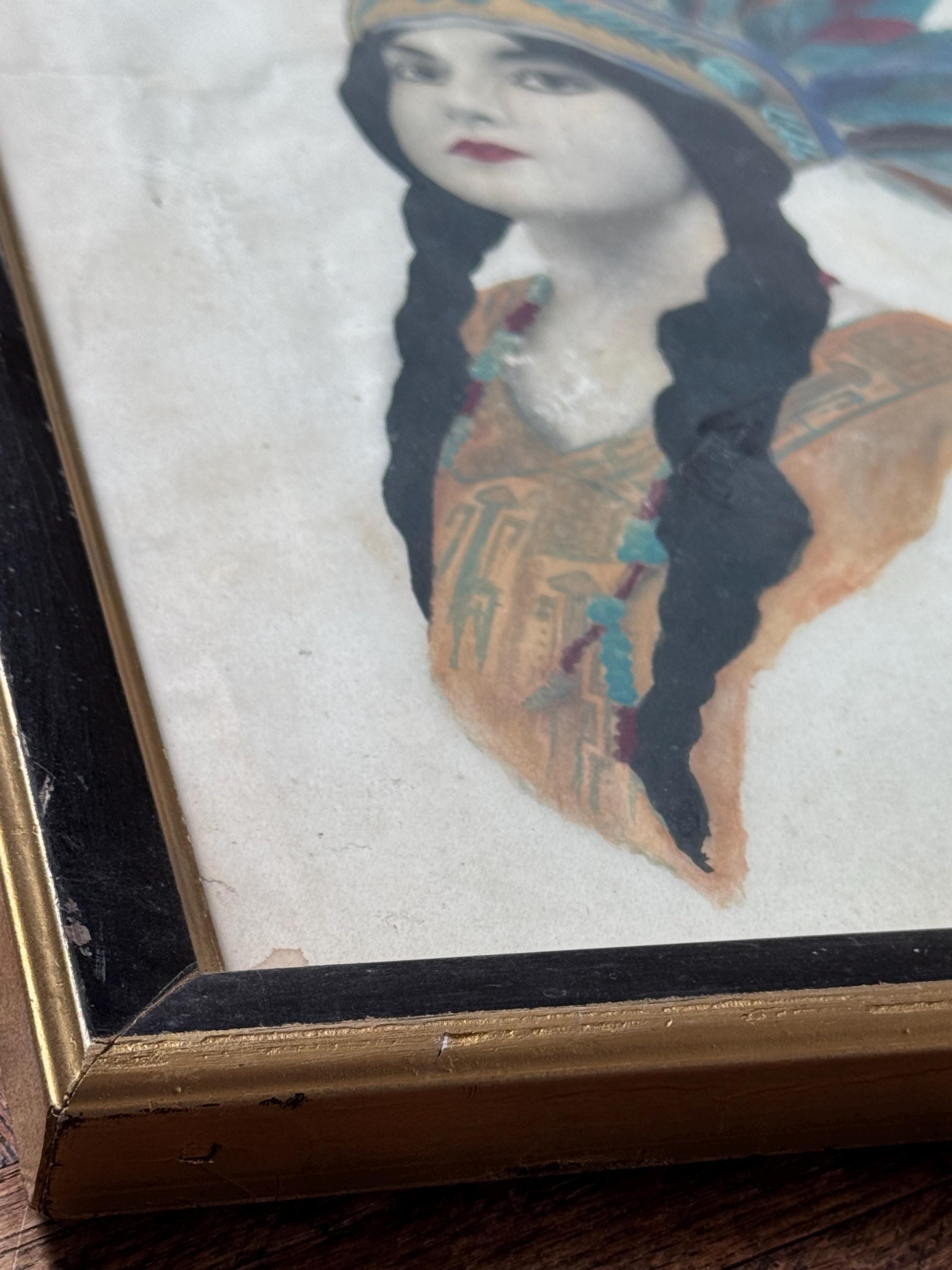 ANTIQUE NATIVE INDIAN PRINCESS PAINTING PICTURE