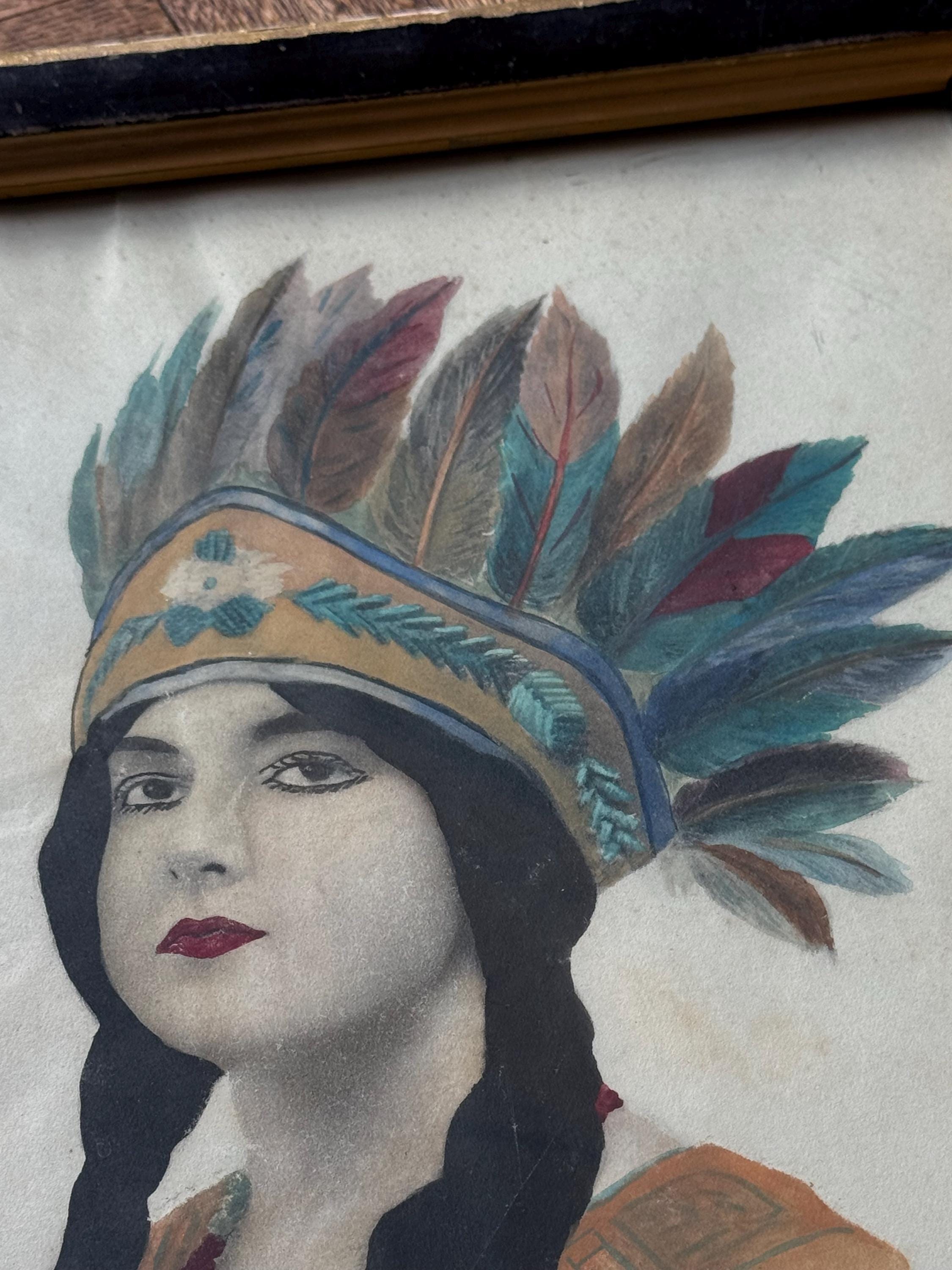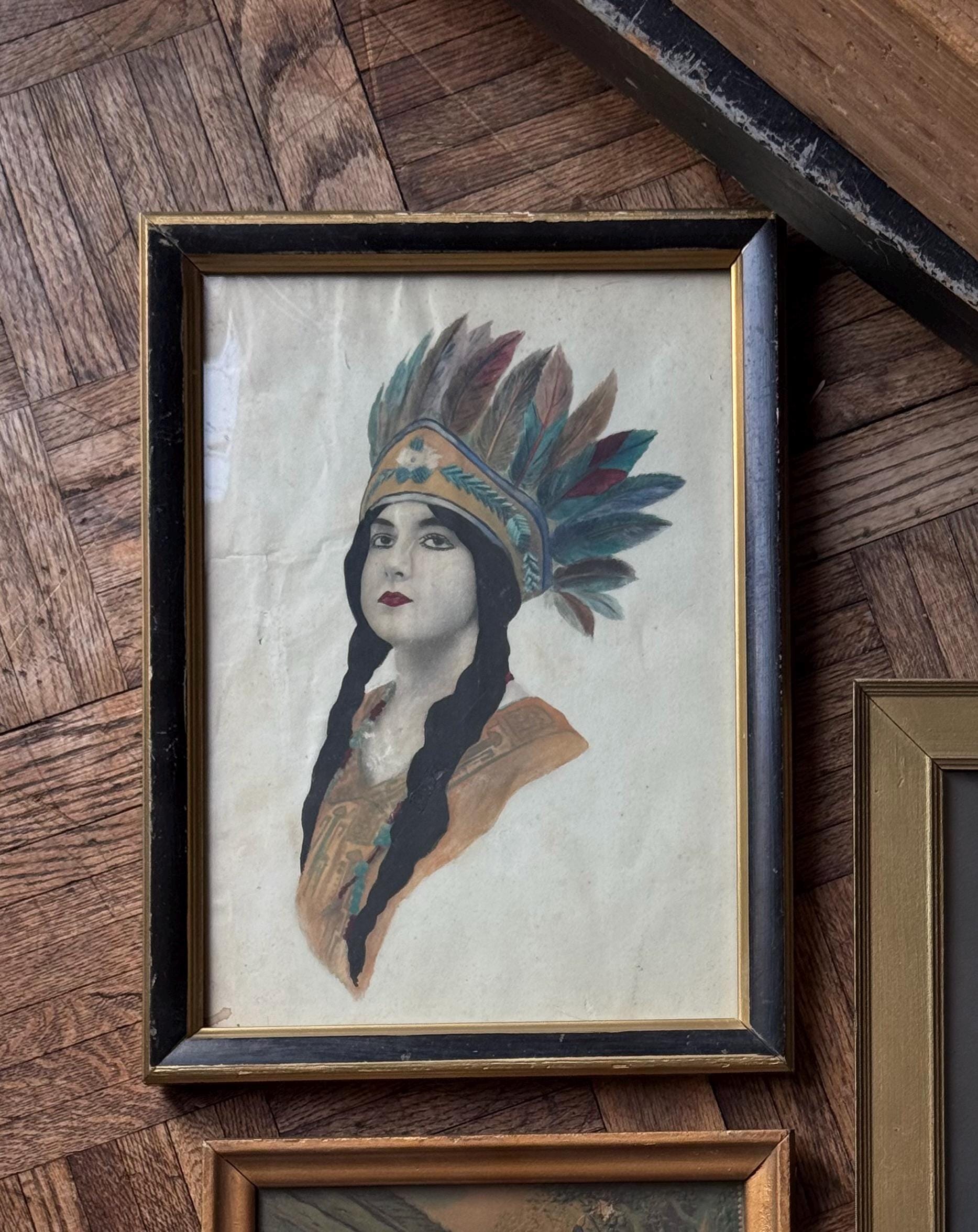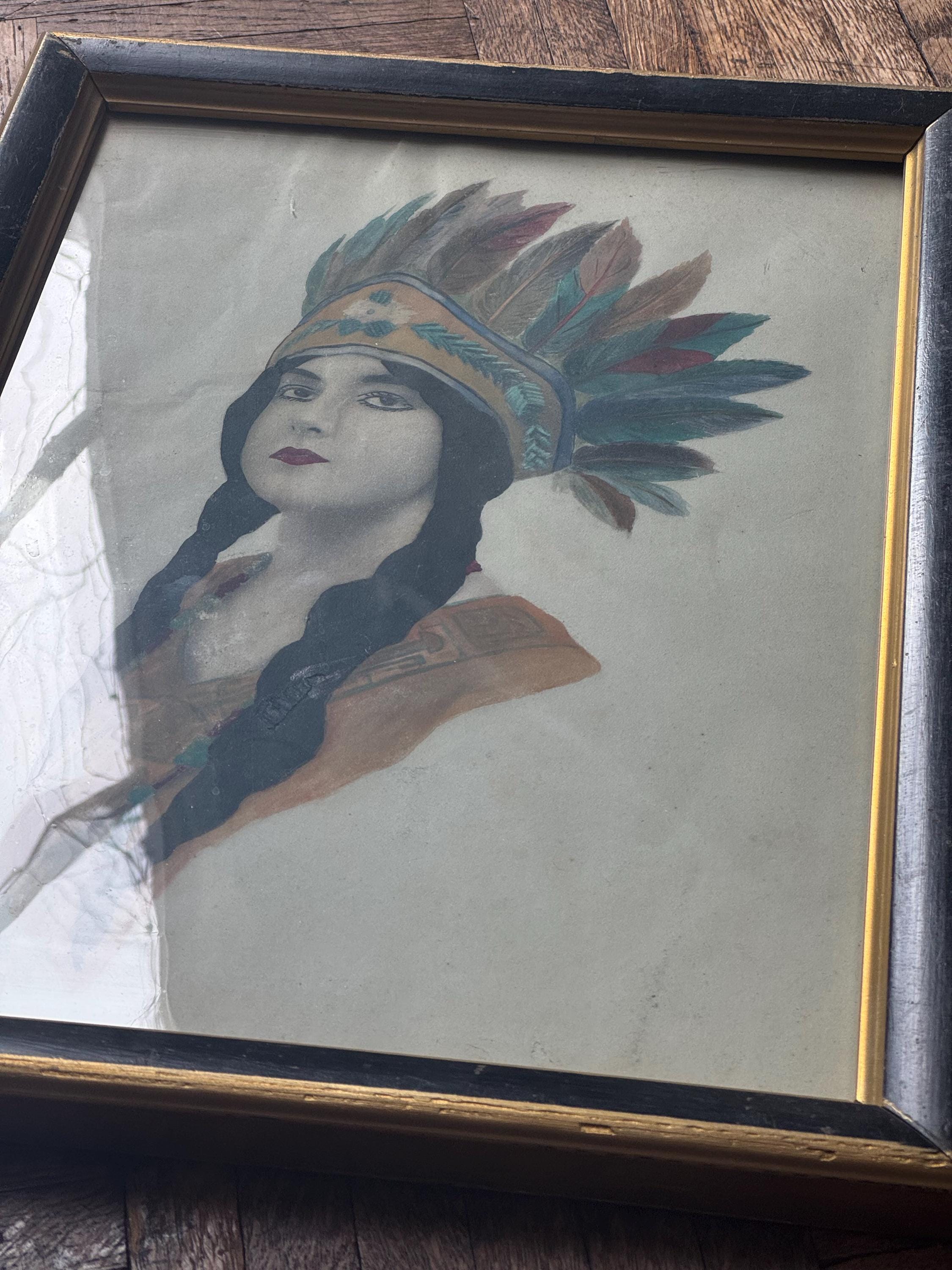 Antique Native Indian Princess Painting Picture